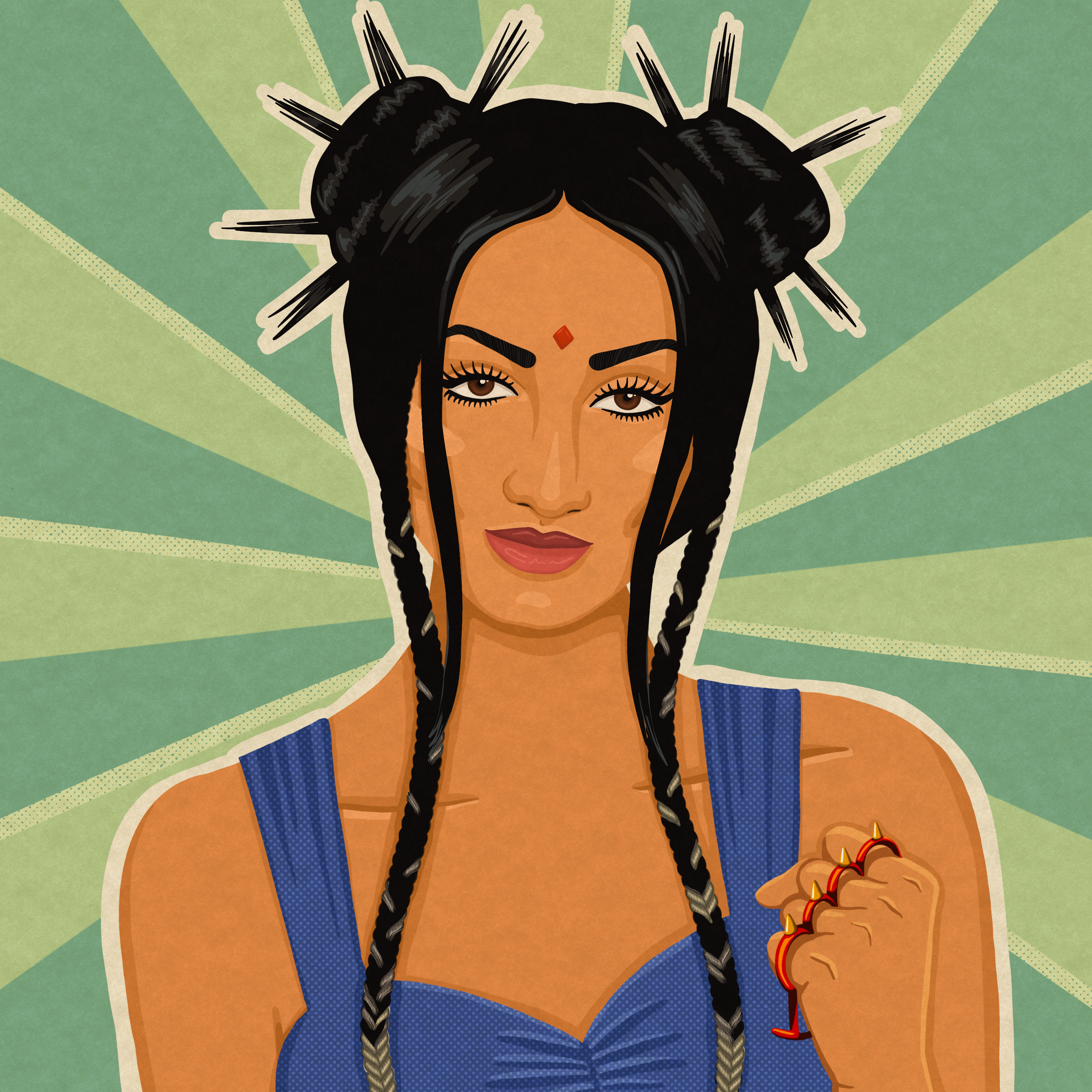 This series is a collection of illustrations of women kicking butt in 2023. Each week, Sara illustrates a new woman making waves in the world in their respective fields of expertise. Below is a sampling of the series. At the conclusion of 2023, 52 badass women will have been celebrated with an honorary illustrated portrait. This work was originally completed for the Women and Weapons brand.