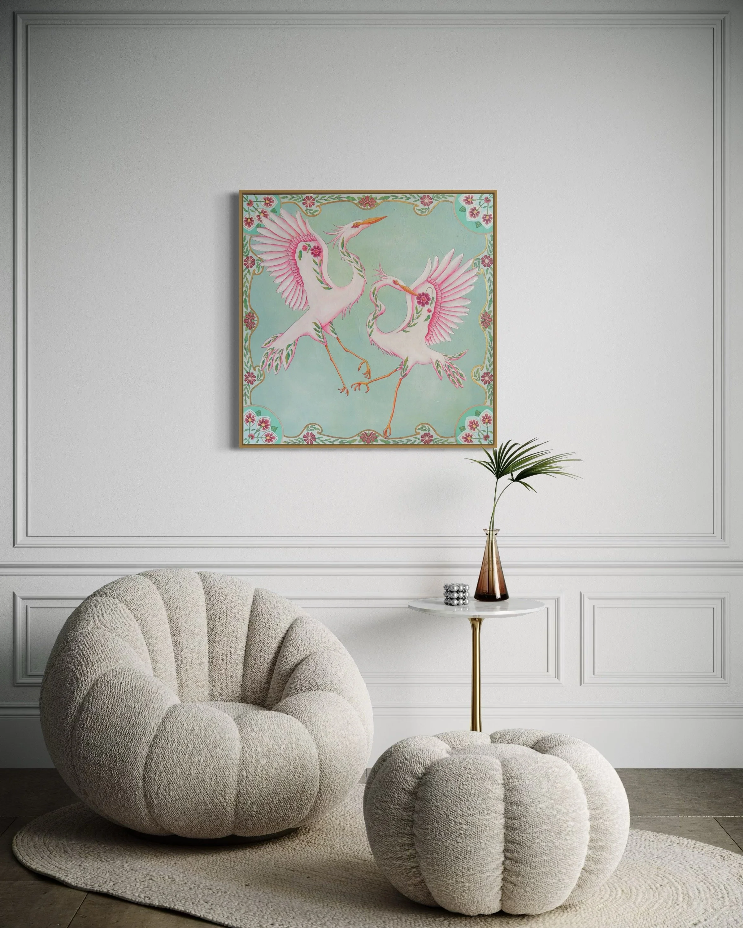 The Courting is a one of a kind painting displaying the beautiful relationship between two at the beginnings of falling in love.
