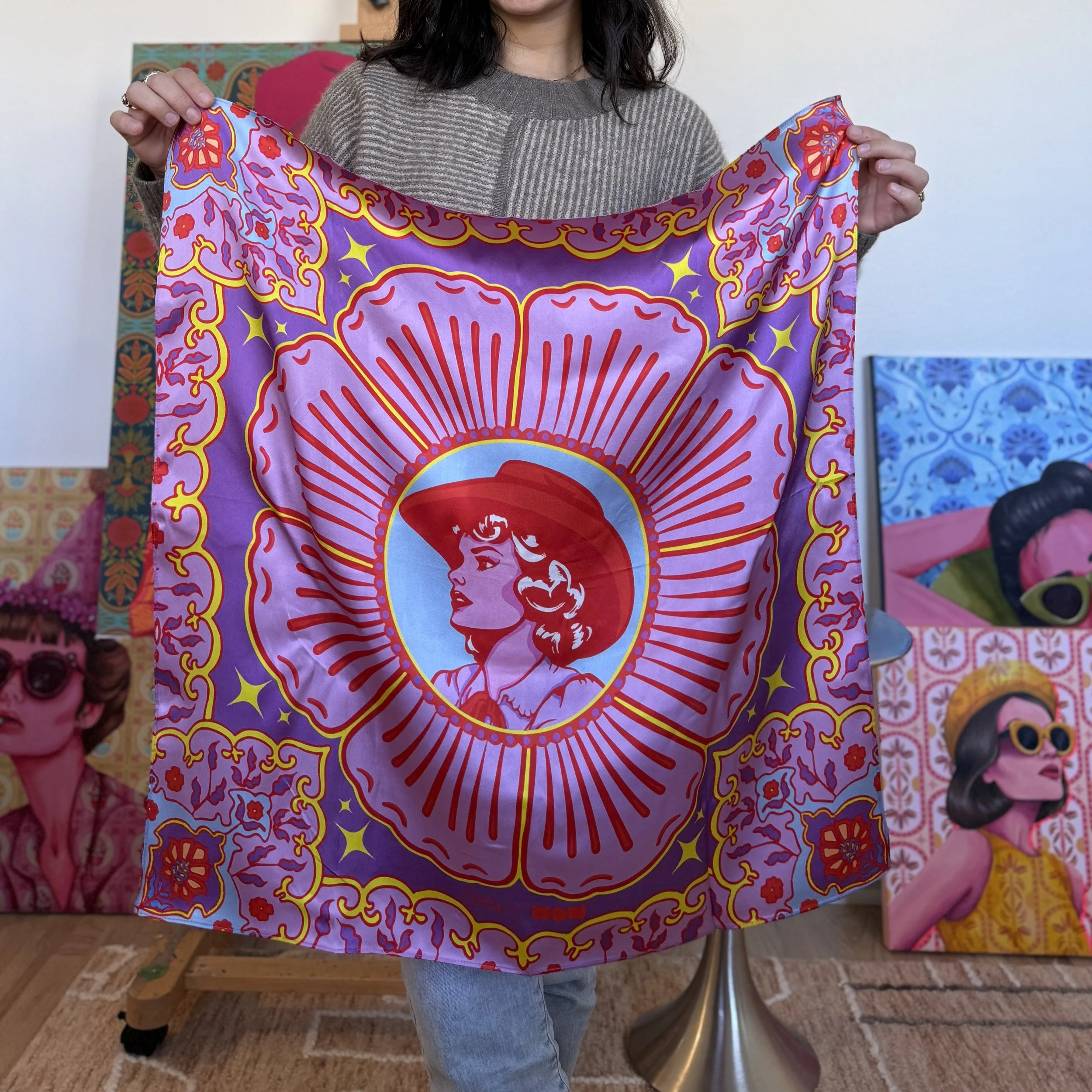 I designed a scarf, several shirts, and illustrated four portraits for display at the SheFi summit in tandem with the World of Women brand at ETH Denver for 2025
